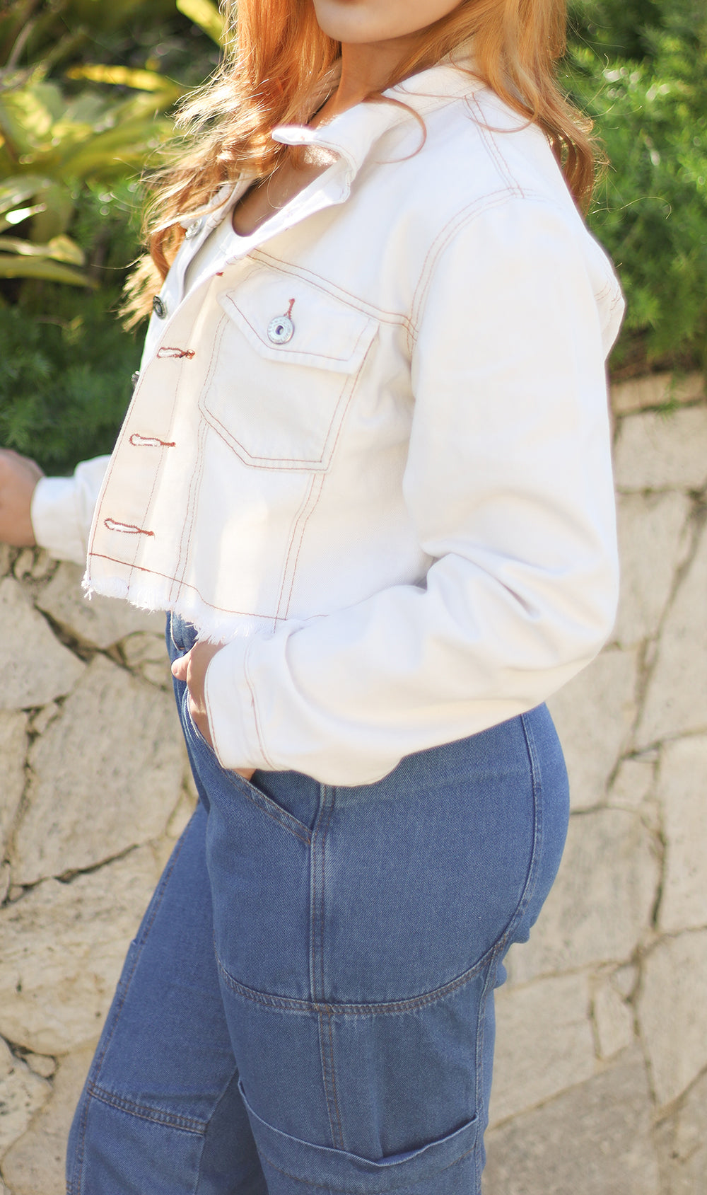 Jaqueta Jeans Ana é cheia de estilo e personalidade. Com modelagem cropped, bolsos frontais e barra desfiada, traz um ar moderno e despojado ao visual. Versátil, combina facilmente com diferentes peças e é perfeita para compor looks casuais cheios de atitude.